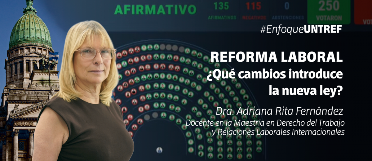 La docente de la Maestría en Derecho del Trabajo y Relaciones Laborales Internacionales Adriana Rita Fernández explicó los cambios más relevantes y el impacto que tendrá sobre trabajadores y empleadores la reforma laboral recientemente sancionada por el Congreso de la Nación.
